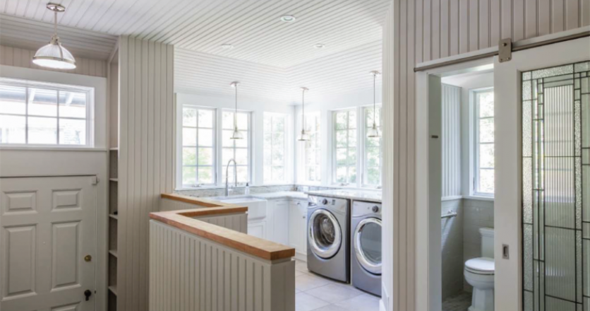At the beginning of the project, the client started with no garage and a small closet in their kitchen, which held a washer and dryer. The original location of the laundry cabinet was not functional in the kitchen and was inefficient for the owner’s uses. By adding the addition, they were able to get a fully functional laundry room with a convenient entrance from the new garage and existing driveway. And because of the exceptional design and overall craftsmanship, our team was able to tie in the in new addition with its fine details and styles to fit perfectly in to the original house.